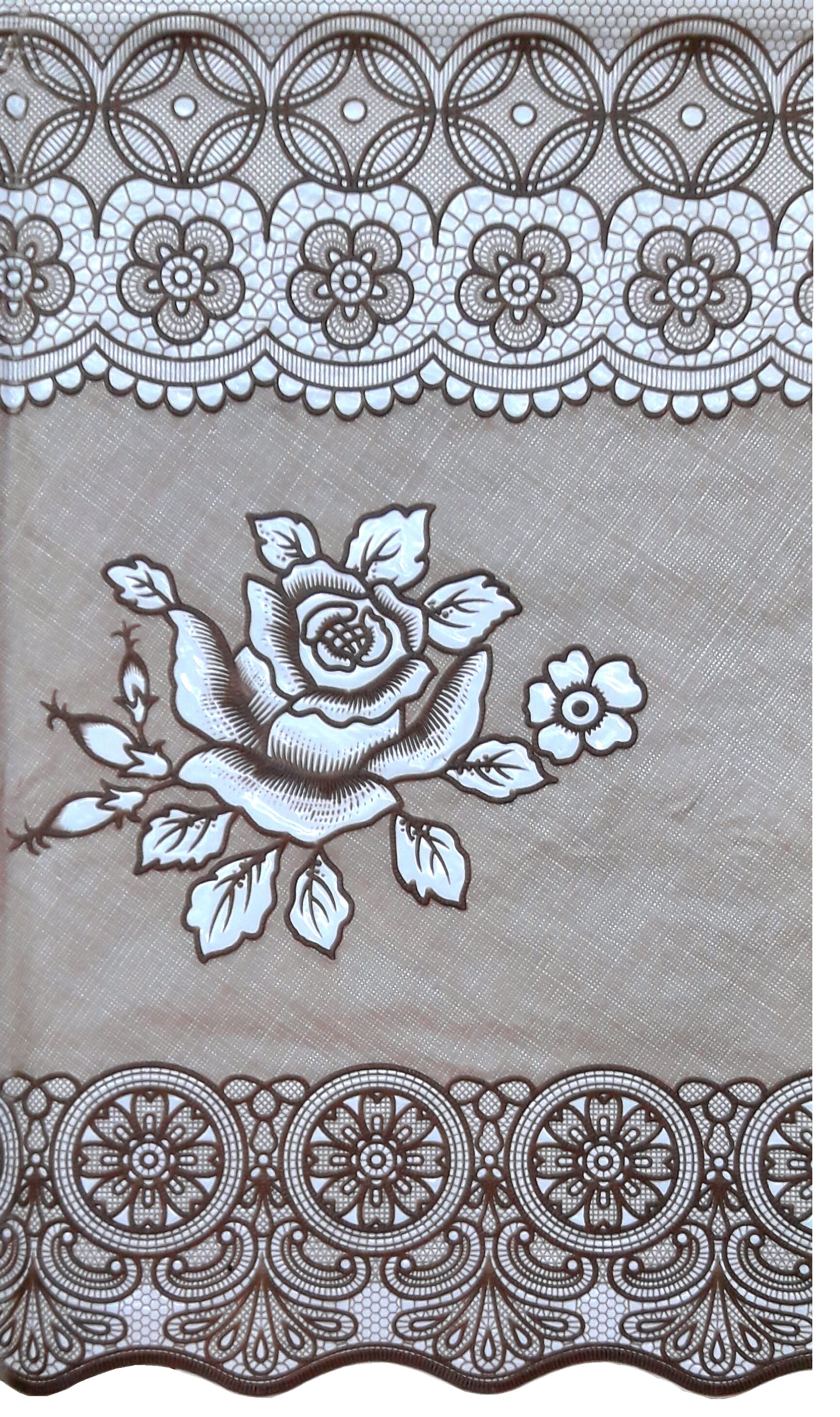- Kích thước: đường kính 178cm - Họa tiết hoa lá - màu nâu - Sản xuất tại Đài Loan - Chất liệu: Nhựa PVC dẻo, mềm mại, dễ giặt, nhanh khô . - Bề