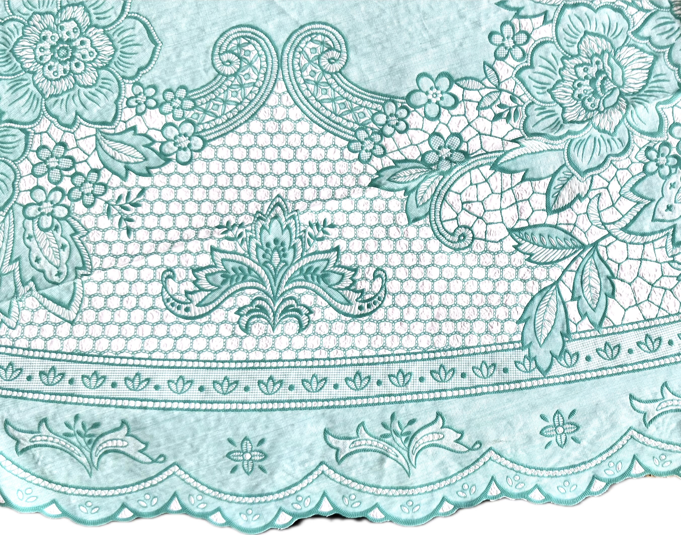 ✨Khăn trải bàn PAULEE FY116 tròn - đường kính 178cm, hoa văn, màu xanh ngọc, nhựa PVC dẻo, không thấm nước