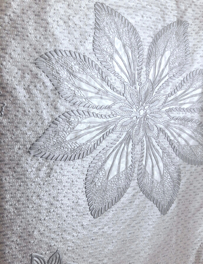 ✨Khăn Trải Bàn PAULEE - PWL 241 hoa văn nổi, ánh kim bạc, nền kem bạc, không thấm nước - 147cm x 230cm.
