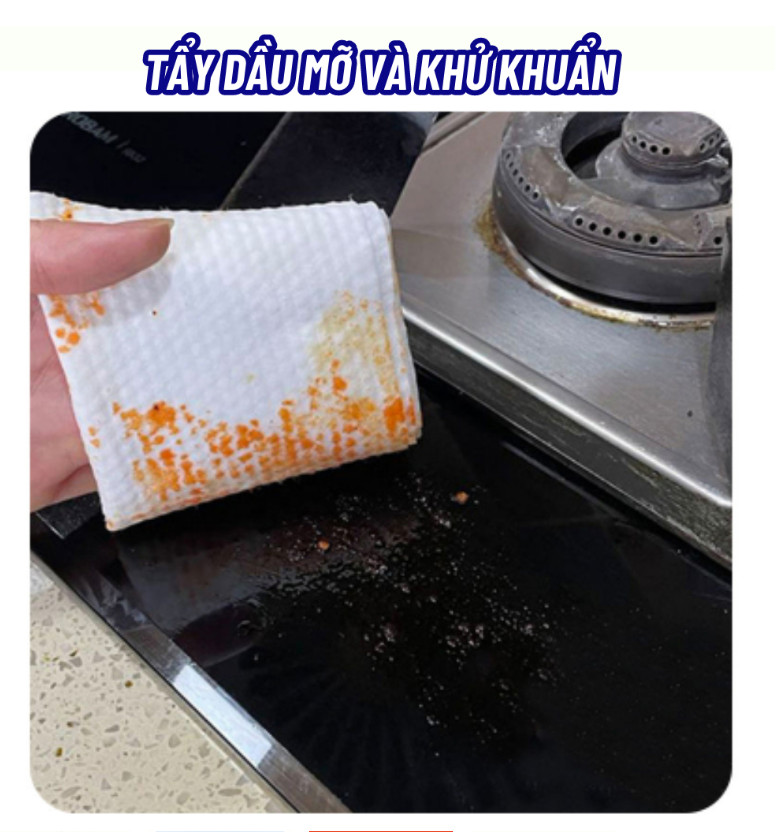 Khăn lau bếp và nội thất đa năng giúp bạn làm sạch các vết bẩn trên bếp, bàn ăn nhanh chóng. Sản phẩm dùng được trên mọi bề mặt như bàn kiếng, cửa kiếng, bề