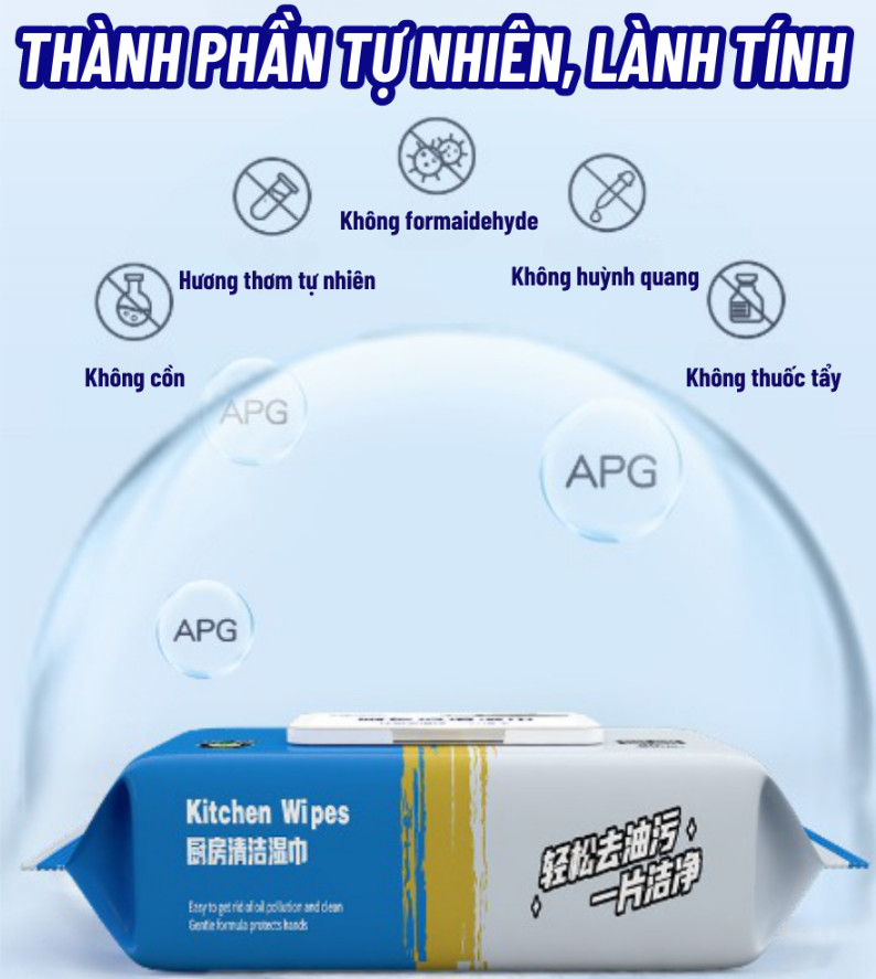 Công thức diệt khuẩn khử mùi đa năng trong khăn ướt làm sạch nhiều bề mặt đồ dùng, loại bỏ vết dầu mỡ. Khăn ướt lau bếp làm sạch nhẹ nhàng, lau sạch tức thì không cần phải kỳ cọ, an toàn cho da tay