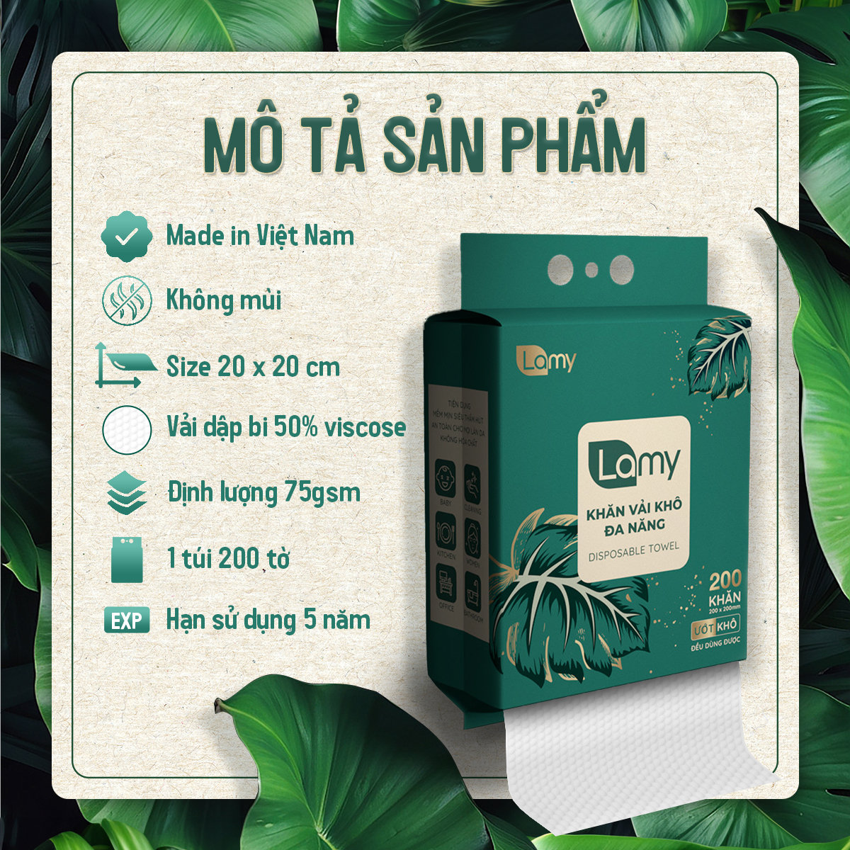 THÀNH PHẦN: 100% vải không dệt/ Non-woven Fabric (50% Viscose, 50% Polyester).