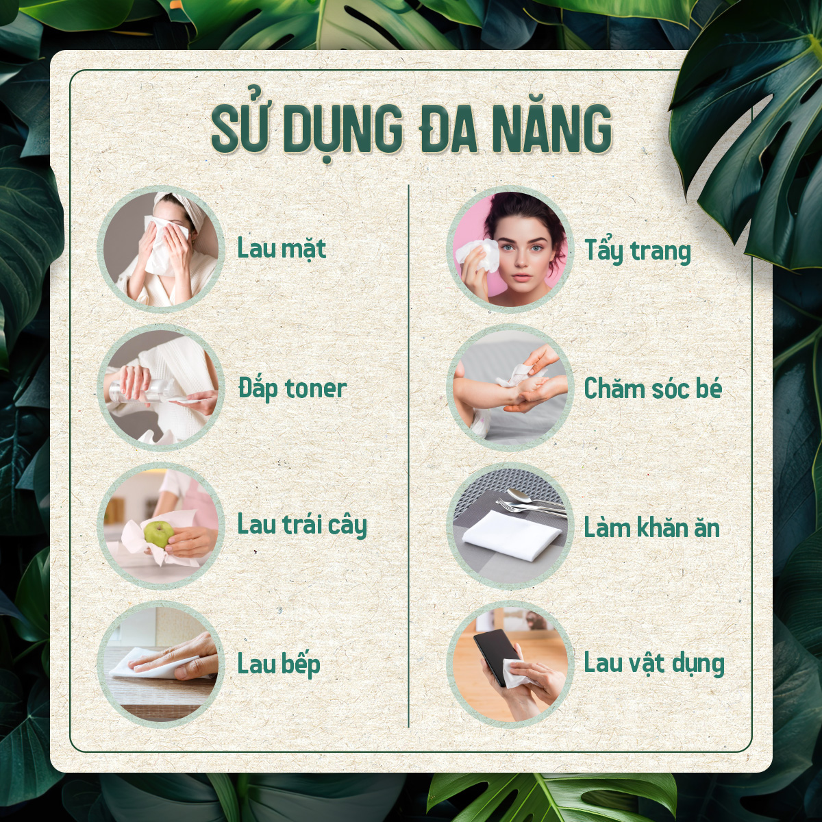 Khăn vải khô đa năng được làm từ chất liệu vải không dệt, có đặc tính dai, mềm, mịn, độ co giãn cao. Sản phẩm có thể sử dụng thay thế hoàn toàn khăn ướt,