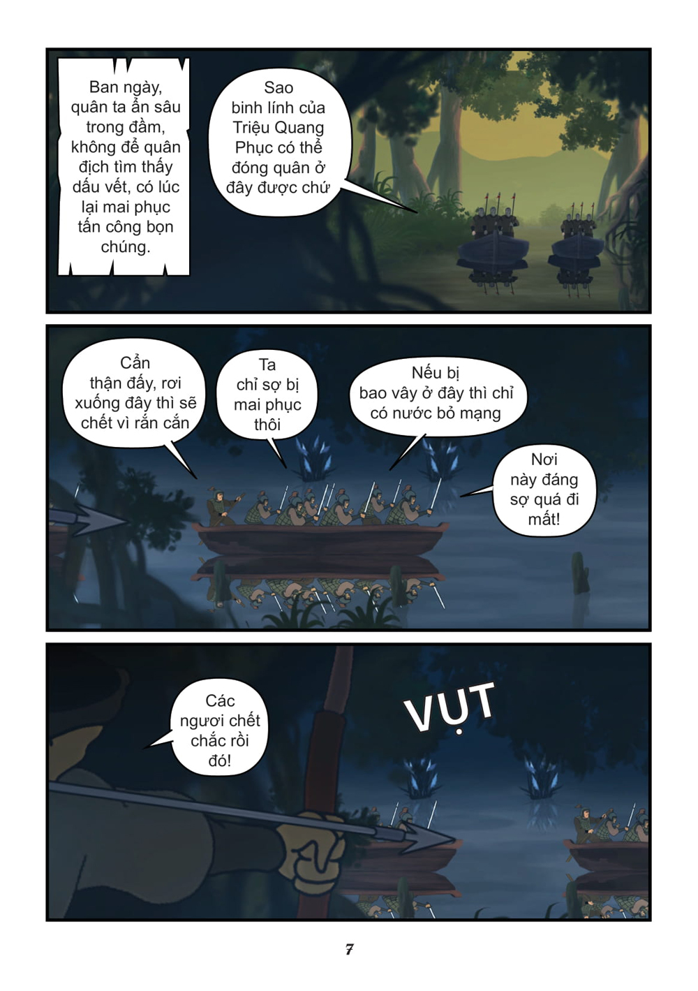 Bộ sách “Truyện tranh lịch sử Việt Nam – Khát vọng non sông” gồm hàng trăm tập, giới thiệu ngắn gọn, sinh động những truyền thuyết đầy tính nhân văn và những sự kiện, những nhân vật nổi tiếng trong lịch sử hàng nghìn năm của dân tộc Việt Nam. Triệu Quang Phục, cuộc chiến tại đầm Dạ Trạch – Triệu Quang Phục là vị vua kế tục vua Lý Nam Đế đánh đuổi quân xâm lược phương Bắc, giữ nền độc lập cho đất nước Vạn Xuân vào thế kỷ thứ VI. Ông đã chọn địa thế ở đầm Dạ Trạch (Hưng Yên) để chiến đấu và giành chiến thắng vẻ vang, xây dựng nền tự chủ…