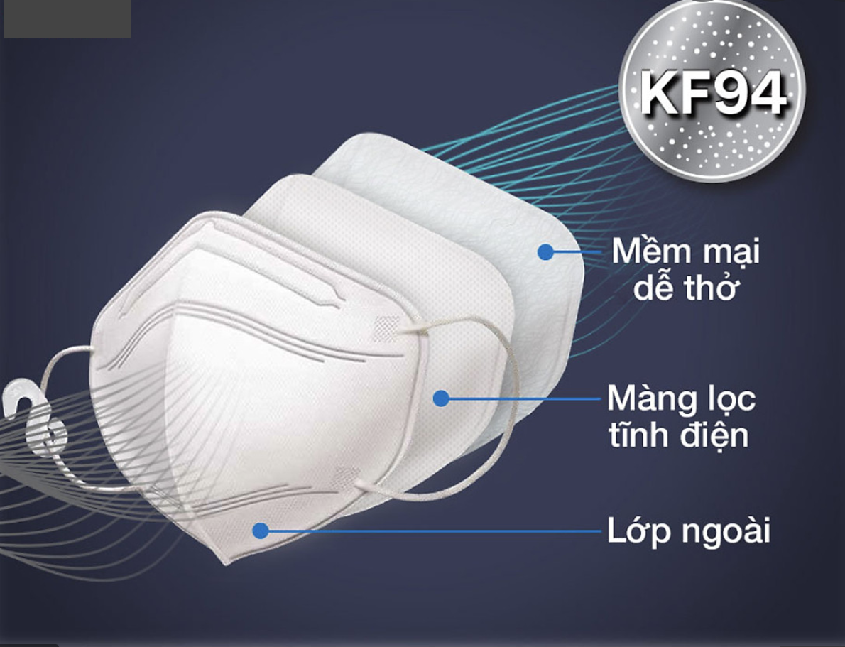 - Tiêu chuẩn: KF94, lọc tối thiểu 94%, tương đương N95. Trước khi sử dụng, phải xác định được: