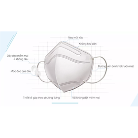 Thành phần - Các lớp vải gồm: lớp ngoài, lớp thứ hai và lớp trong là lớp vải không dệt, lớp thứ ba là lớp vi lọc. - Dây thun đeo tai. - Thanh nẹp