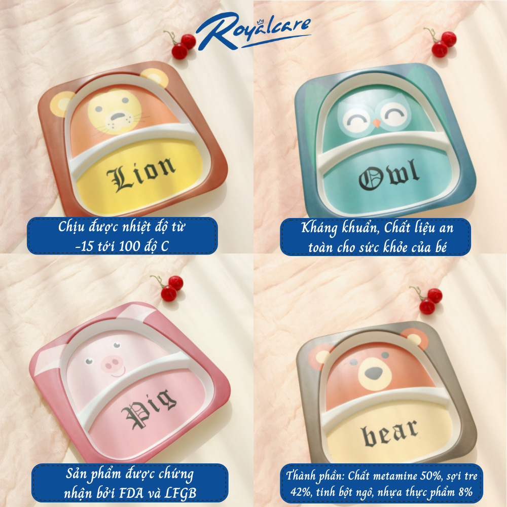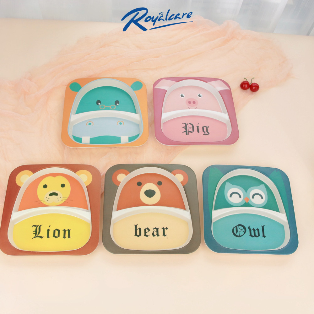 Tên sản phẩm: Đĩa ăn dặm cho bé hình động vật ngộ nghĩnh chất liệu bột tre Bamboo kháng khuẩn D7006 Royal care - đồ ăn dặm an toàn