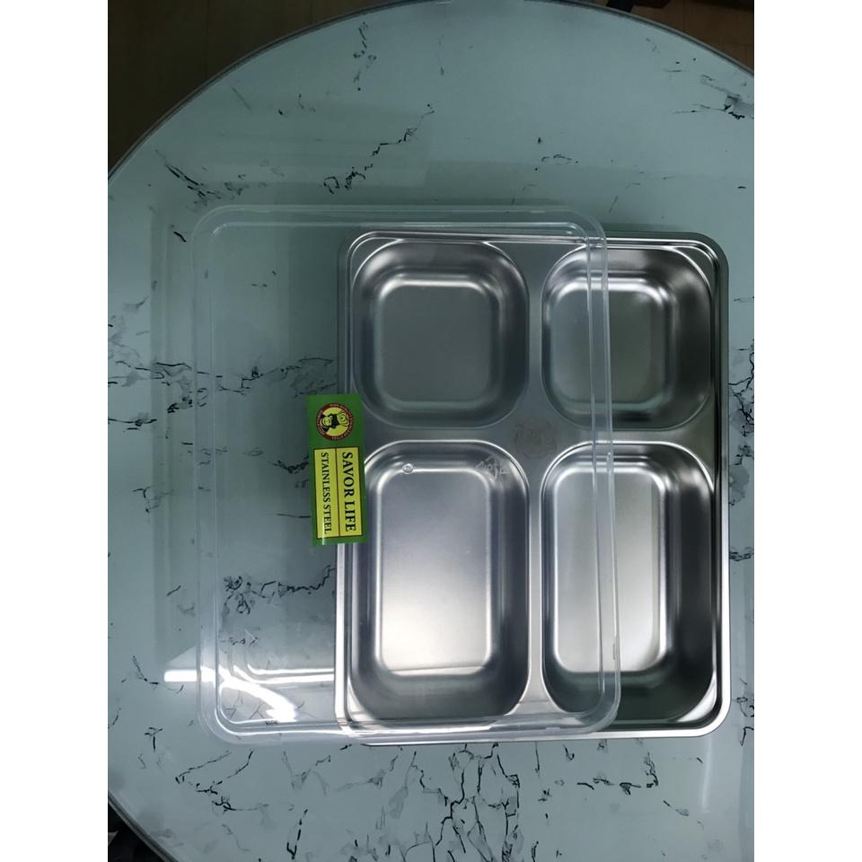 Khay cơm inox 4 ngăn SUS 304 được sản xuất trên dây truyền công nghệ hiện đại bằng phương pháp dập thủy lực, sản phẩm bóng đẹp, không từ tính, không bị hoen ố, an