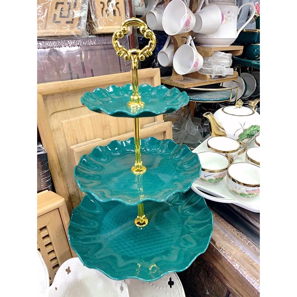 Khay đựng hoa quả bánh kẹo sứ xanh cổ vịt , trắng và thủy tinh trong 3 tầng Những chiếc khay bánh xinh xắn và vô cùng đẹp mắt được làm bằng chất liệu gốm