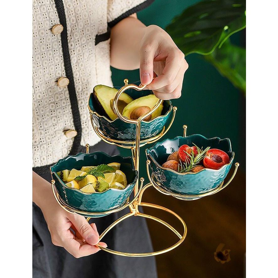 Mua tại TiktokKhay đựng hoa quả bánh kẹo sứ xanh cổ vịt , trắng và thủy tinh trong 3 tầng