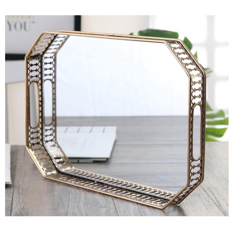 KHAY CHỮ NHẬT TRÁNG GƯƠNG CAO CẤP PHONG CÁCH BẮC ÂU CHẤT LIỆU: Viền khung kim loại, mặt tráng gương trong đẹp KÍCH THƯỚC: 35.5*25*5cm MÀU SẮC: Vàng kim, mặt gương trắng CÓ NHIỀU LOẠI