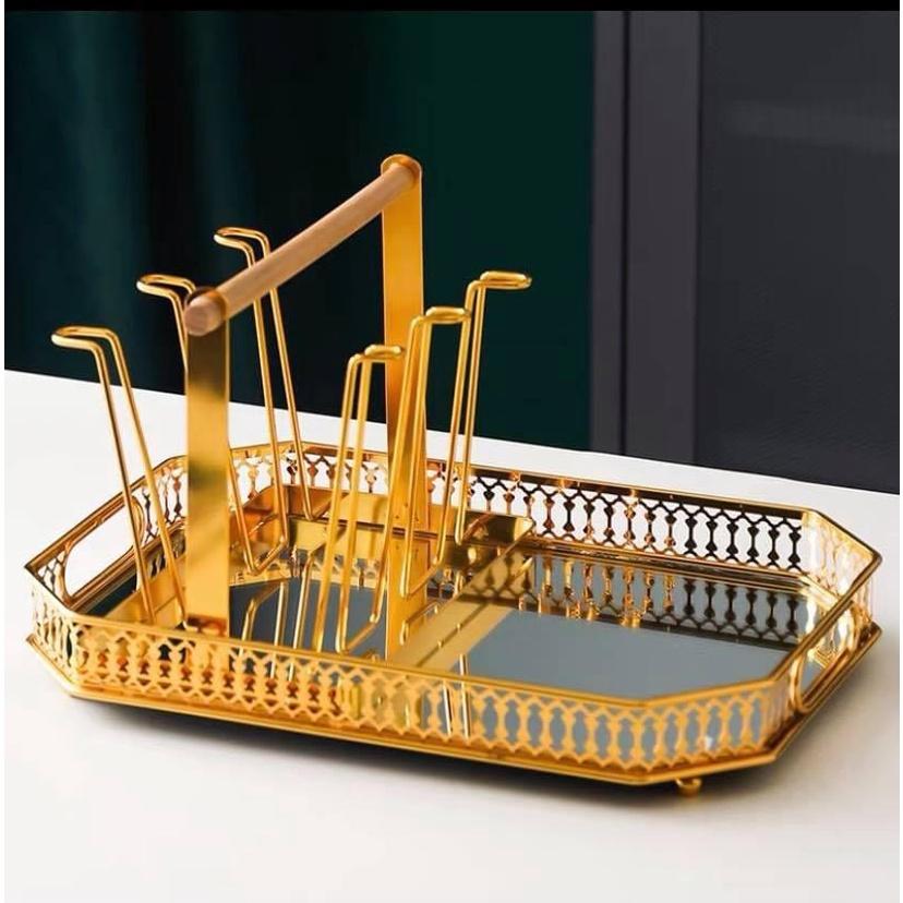 Khay up cốc, giá để ly cao cấp hợp kim mạ vàng sang trọng tặng kèm khay hứng #giadung #reels