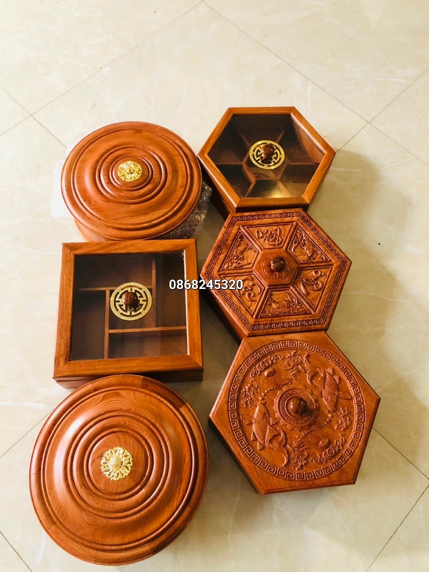 Khay đựng bánh kẹo, mứt Tết gỗ hương, hàng loại 1 bao đẹp, bao bền