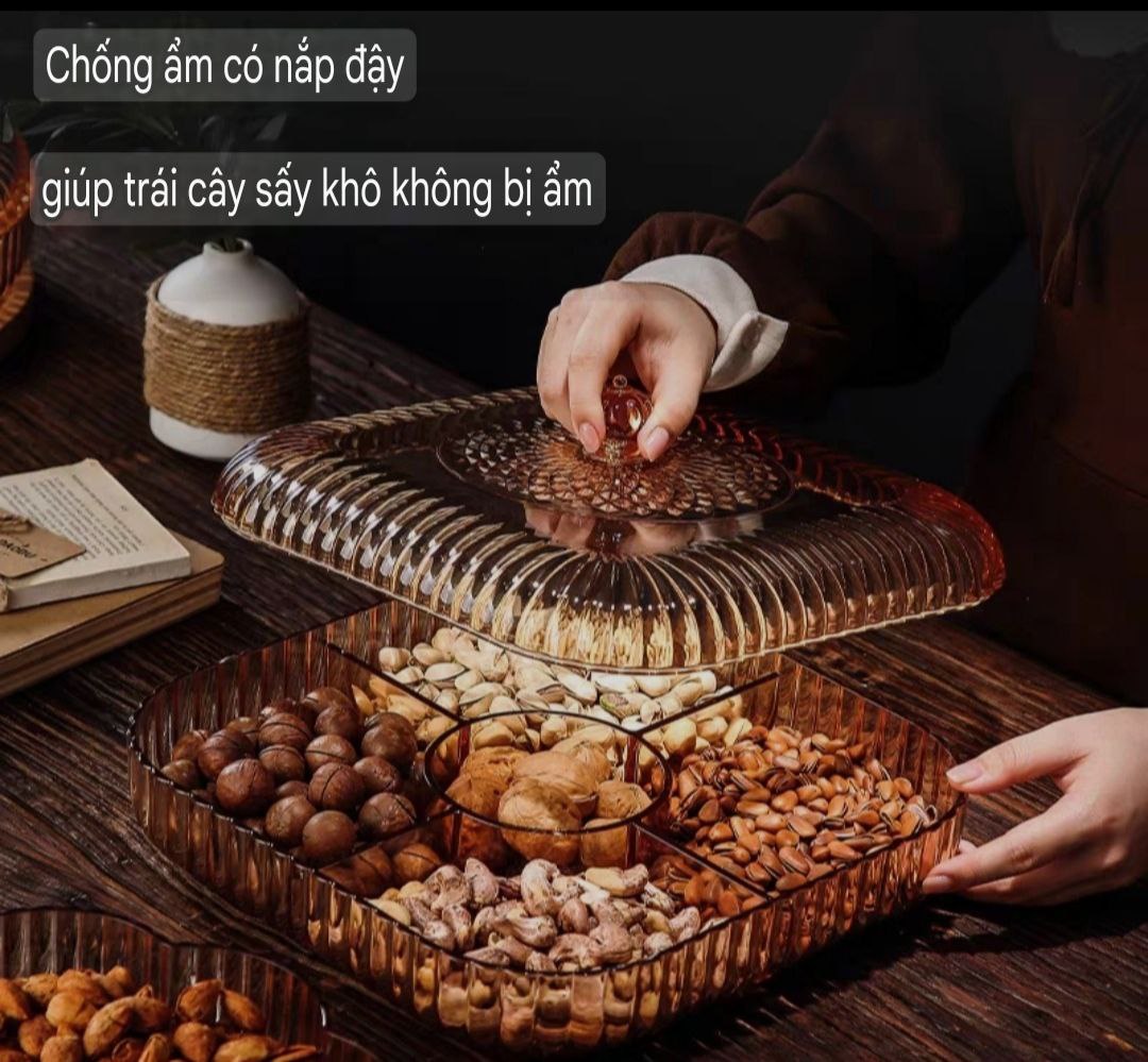Khay đựng mứt Tết NHIỀU NGĂN bằng Nhựa Acrylic Ngày đầu xuân năm mới hẳn ai cũng mong muốn cho căn nhà của mình thêm phần mới mẻ, trang hoàng. Vậy nên bên cạnh việc trang trí nhà cửa, thì việc chuẩn bị những món đồ nhỏ như khay mứt tết chẳng hạn cũng không kém phần quan trọng. Bộ Khay đựng mứt Tết 6 ngăn bằng Nhựa Acrylic vô cùng trang nhã và đẹp mắt. Nắp đậy kín ngăn cho gió, côn trùng không bay vào được… đảm bảo cho món mứt luôn thơm ngon. Chất liệu nhựa cao cấp cho bàn trà, không gian phòng khách, làm việc… tiện nghi sang trọng bậc nhất.
