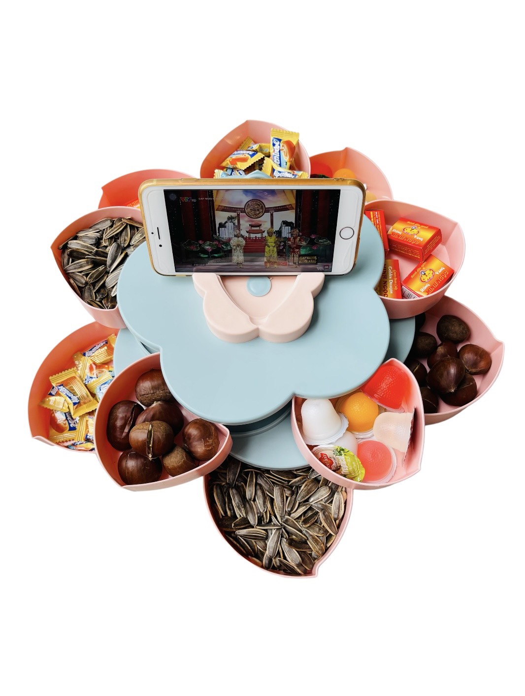 - Khay đựng bánh kẹo tết có nhiều ngăn giúp đựng được nhiều loại bánh, mứt, kẹo, các loại hạ