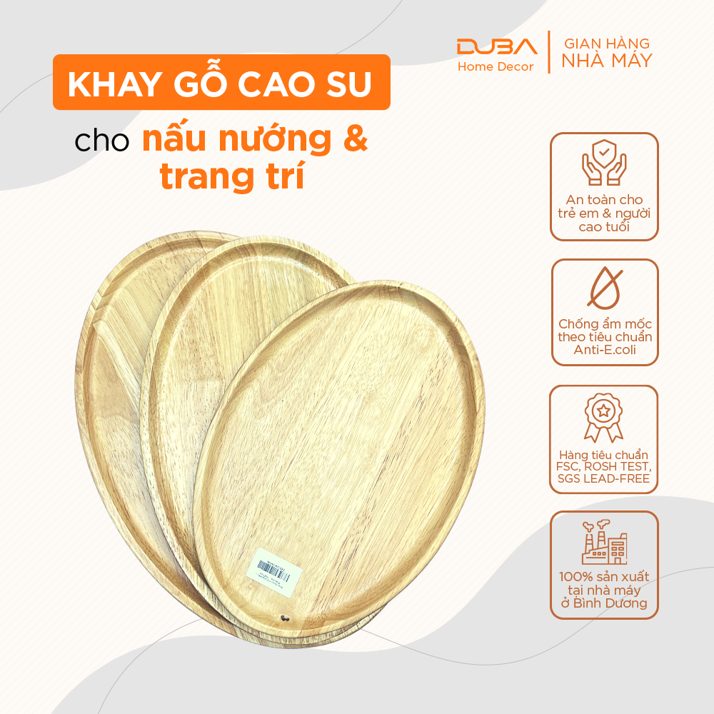 ✨Khay gỗ cao su decor, thớt gỗ trang trí hình elip màu tự nhiên chuẩn xuất khẩu - DUBA
