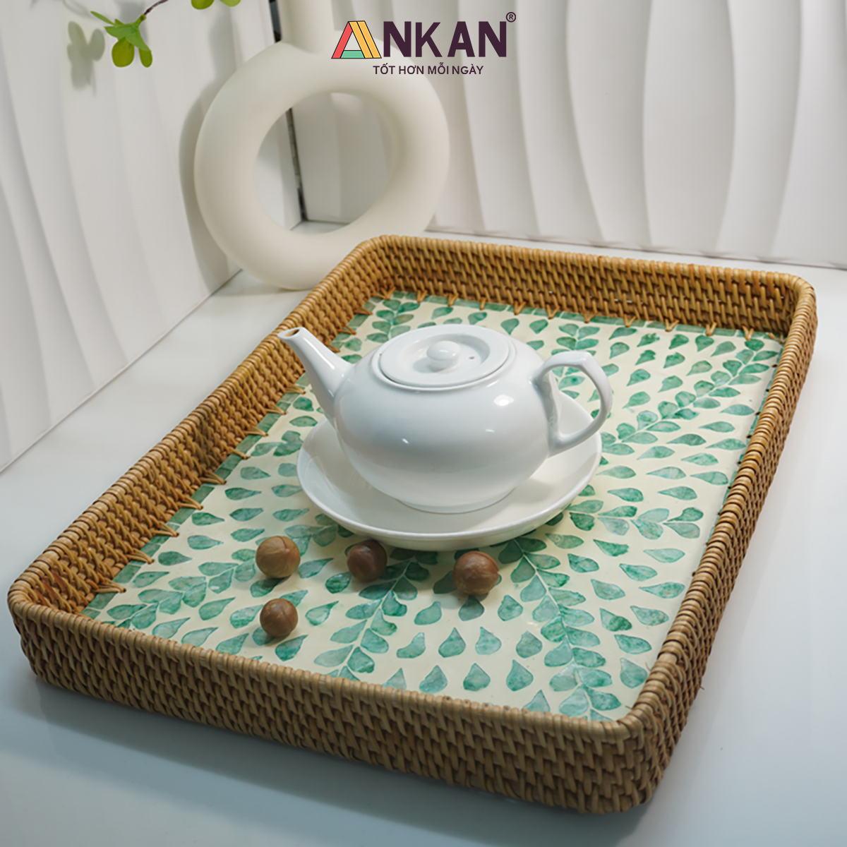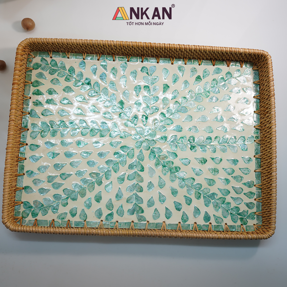 Khay Mây Khảm Trai Thủ Công ANKAN – Decor Trang Trí Nhà Cửa, Đựng Bánh Kẹo, Trái Cây