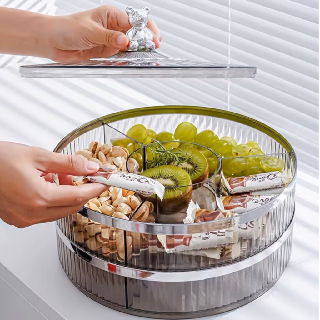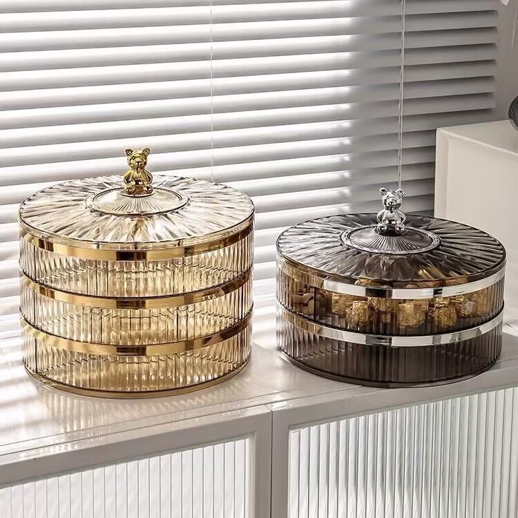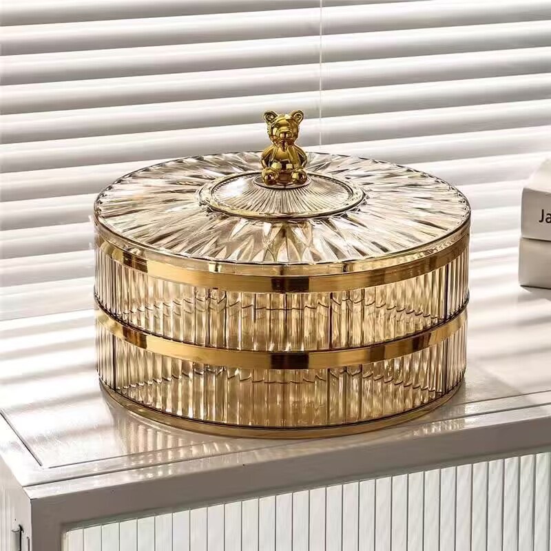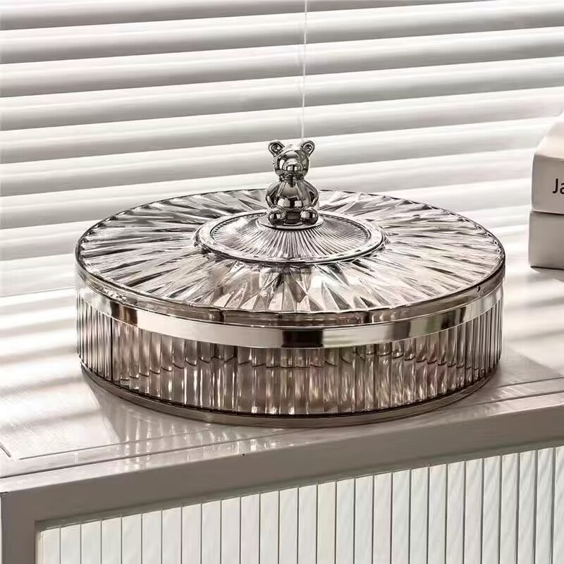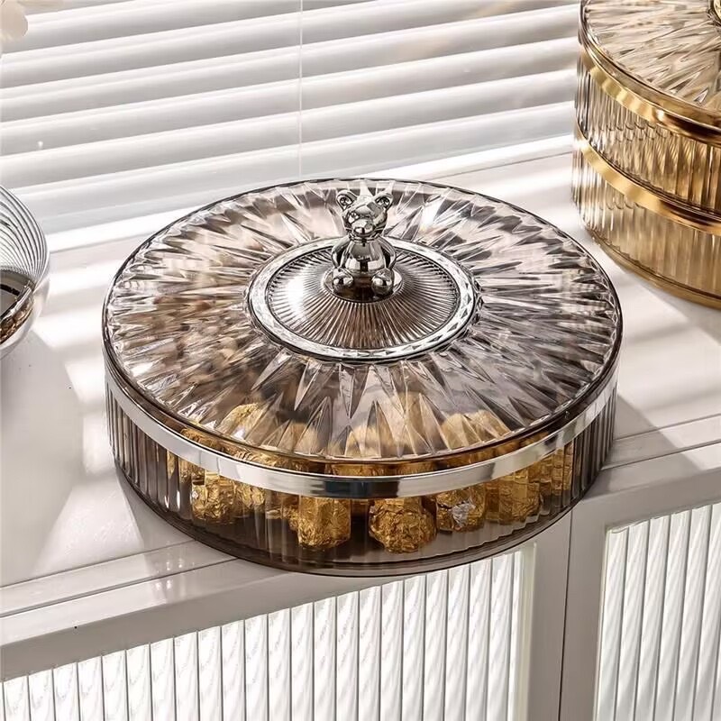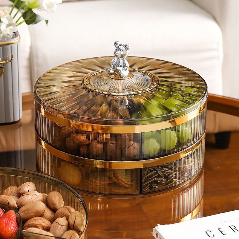 Khay Mứt Tết Pha Lê Trong Suốt, Xoay 360 Độ Cao Cấp Phong Cách Châu Âu Trang Trí Ngày Tết - Hộp Đựng Bánh Kẹo - Hàng Loại 1 - Chính Hãng MINIIN Thủy tinh