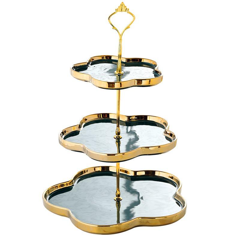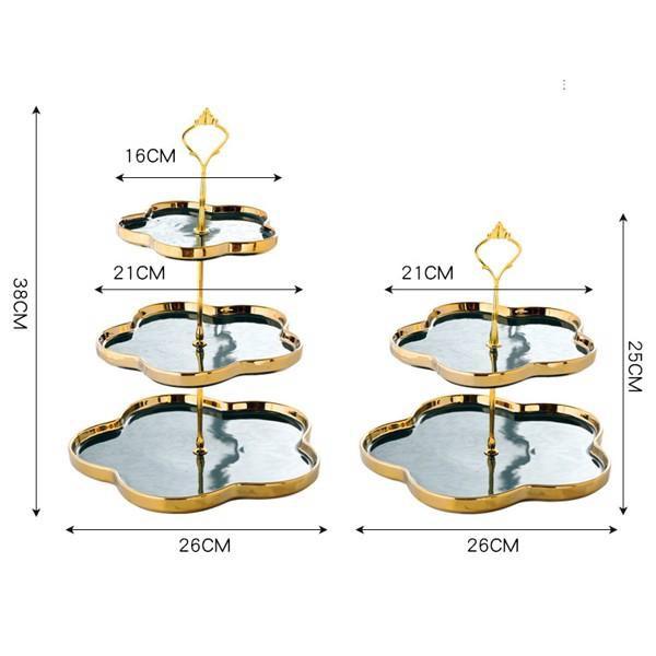Khay đựng hoa quả, bánh kẹo, mứt Tết 2 tầng, 3 tầng bằng gốm sứ kèm đế kim loại mạ vàng cao cấp.