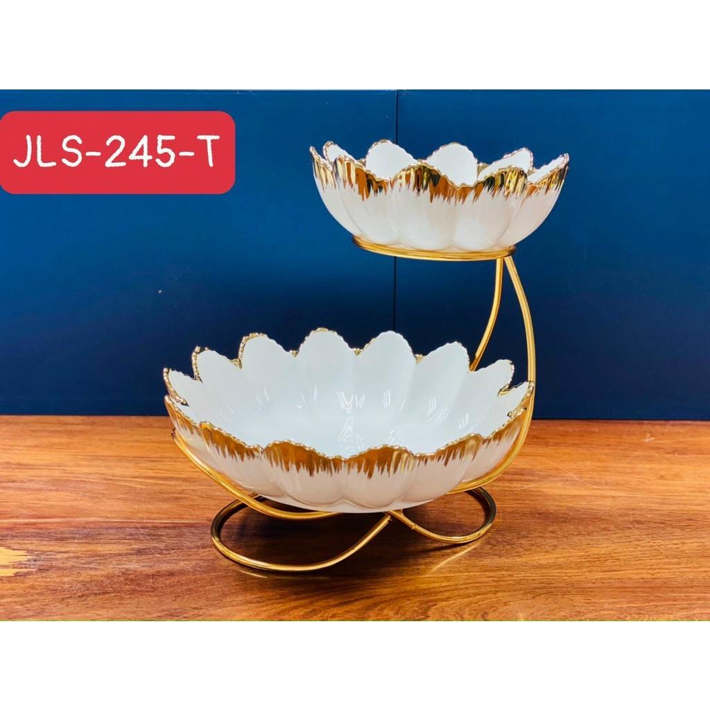 Khay đựng hoa quả, bánh kẹo, mứt Tết 2 tầng, 3 tầng bằng gốm sứ kèm đế kim loại mạ vàng cao cấp.