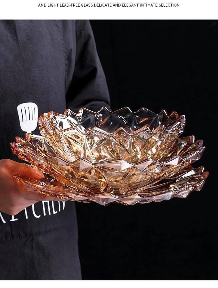 ✨KHAY THỦY TINH CAO CẤP ĐỰNG HOA QUẢ BÁNH KẸO MÀU VÀNG - ANTH687