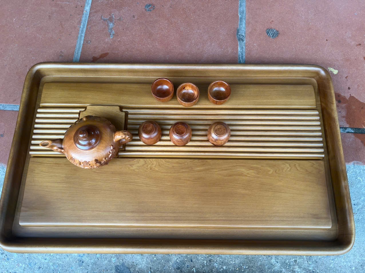 Bộ khay trà và ấm chén gỗ cao cấp chuẩn