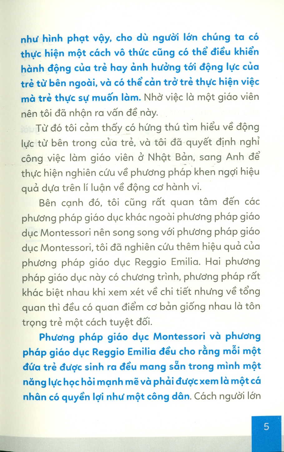 Sách: Giáo Dục Motessori Tại Nhà Maria Montessori từng nói:"Trẻ em sinh ra để học tập, phát triển cũng như cải thiện các hành vi, và chúng rất thích điều đó. Các nhà tâm lí