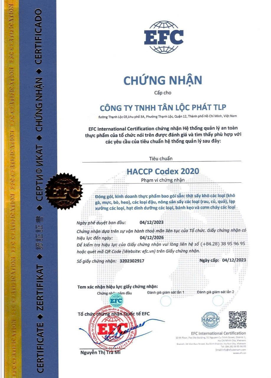 Xuất xứ: Việt Nam Hạn sử dụng: In trên bao bì Trọng lượng: 150G Hướng dẫn sử dụng: Dùng trực tiếp, không cần chế biến. Hướng dẫn bảo quản: Nơi thoáng mát, tránh ánh