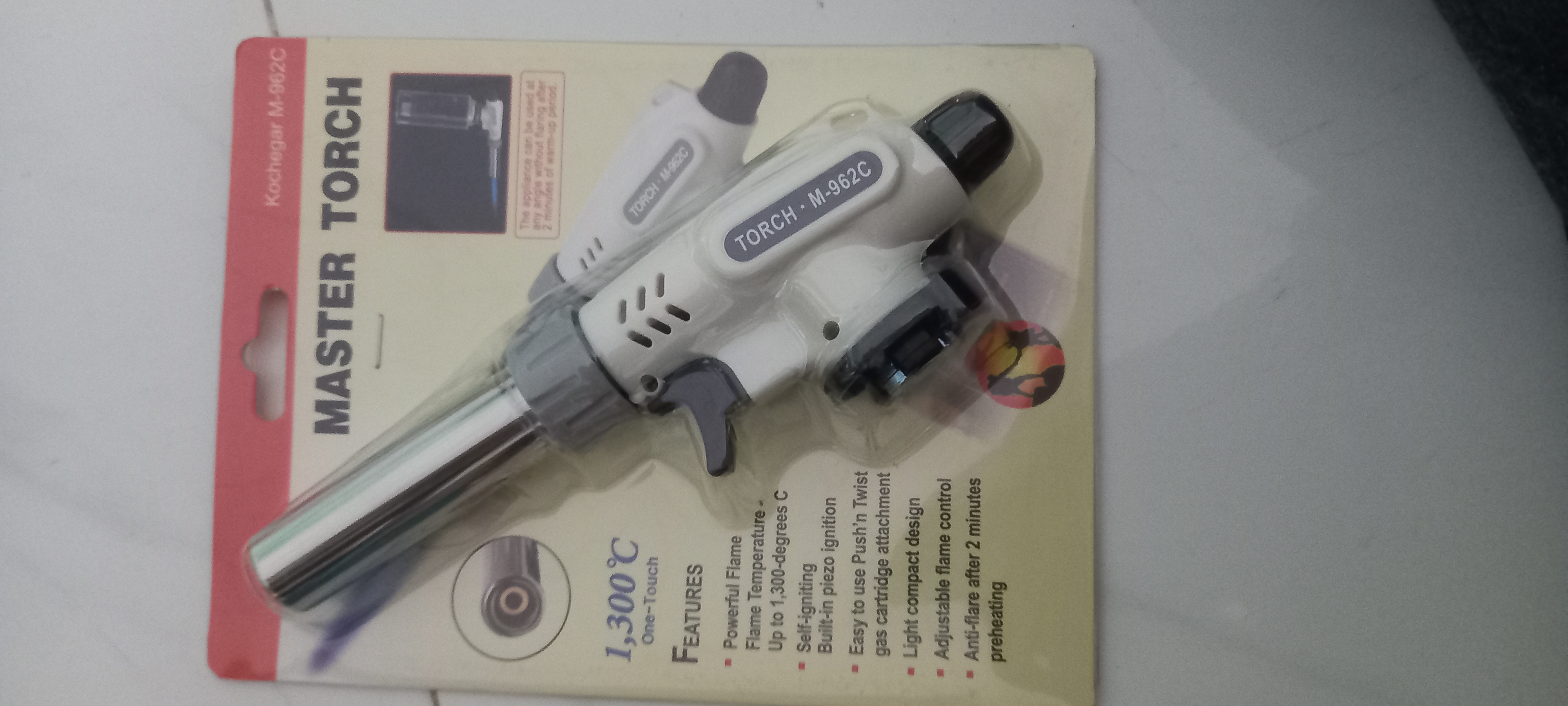 Đầu khò gas, đánh lửa tự động, có thể điều chỉnh được nhiệt độ cũng như ngọn lửa nơi đầu khò Tính năng một push button, có thể làm nóng lên đến 1300 độ C.