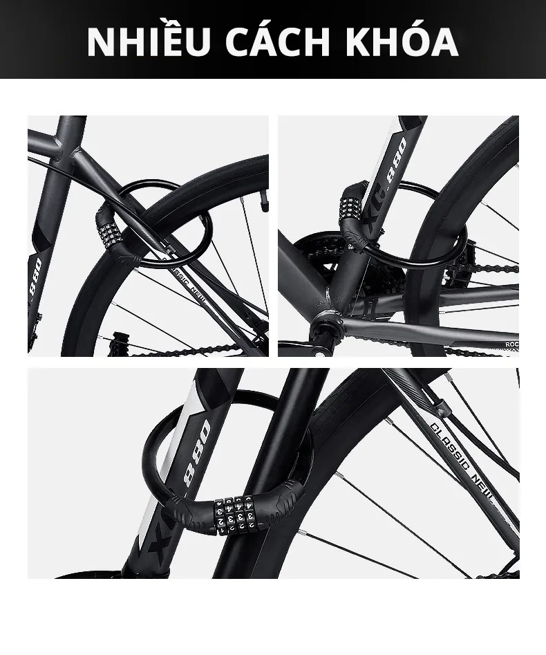 Khóa Xe Đạp Chống Trộm Lõi Thép Mật Mã 5 Số, Khóa Dây 5 Số Lõi Thép Cao Cấp Cho Xe Đạp