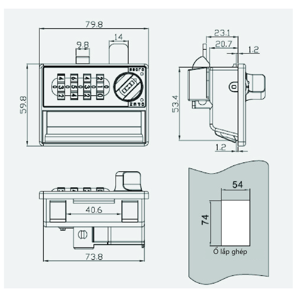 - Tính năng: Người dùng tự cài đặt mã khóa theo ý mình (không giới hạn số lần) Nhận biết trạng thái đóng hoặc mở nhờ vào kim chỉ thị