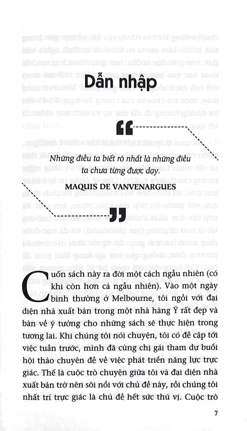 Trực giác là điều hầu hết mọi người sẽ trải nghiệm trong đời, vào lúc này hoặc lúc khác. Đó là linh cảm, là tiếng nói nội tâm hay “giác quan thứ sáu”. Nhưng liệu ta có thể chủ động phát triển trực giác và học cách ứng dụng nó tốt hơn cho cuộc sống? Bác sĩ Cate Howell tin là ai cũng có thể!