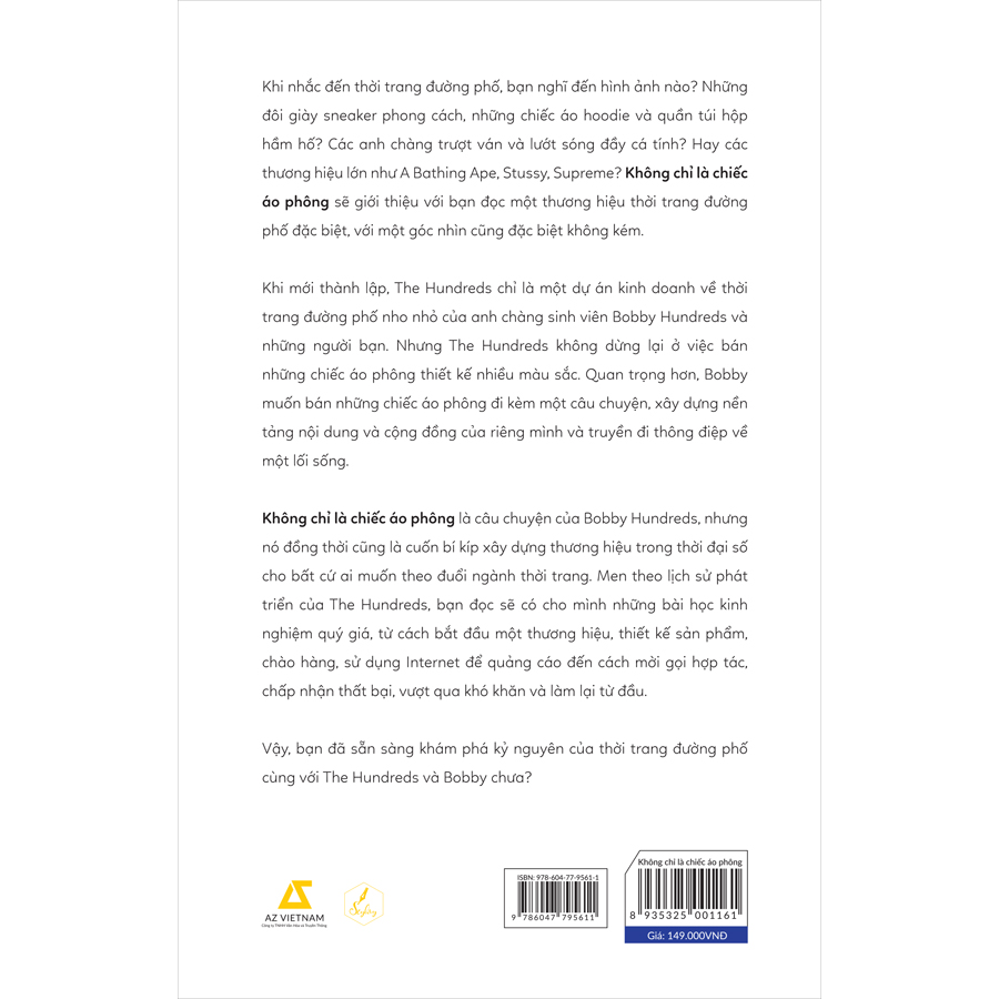 Với bạn, “thời trang đường phố” là gì? Là những chàng trai bụi bặm với hình xăm và chiếc ván trượt? Là các thương hiệu đình đám như Supreme. Stussy hay A Bathing Ape? Hơn cả vậy, nó là một văn hóa và lối sống ẩn chứa rất nhiều câu chuyện thú vị. “Không chỉ là chiếc áo phông” sẽ hé lộ cho bạn đọc một câu chuyện đặc sắc như thế, được xây dựng từ một chặng đường đầy phiêu lưu của tác giả mang tên The Hundreds.