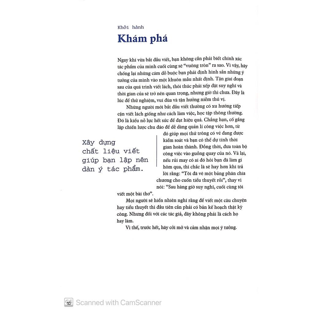 Tôi tin trong mỗi chúng ta đều ẩn chứa một cuốn tiểu thuyết cần được khai phá và chuyển hóa thành con chữ trên trang giấy. Tuy nhiên, vì rất nhiều lý do khác nhau, khao khát và đam mê viết lách ấy ít nhiều bị chôn vùi. Có những người chẳng biết bắt đầu từ đâu giữa bộn bề khối lượng công việc quá lớn. Và cũng có không ít tác phẩm dở dang vì tác giả lung lạc và đánh mất động lực. Vì thế, dù là người viết mới chập chững vào nghề hay một cây bút cừ khôi, bạn không thể nào bỏ qua cuốn sách này.