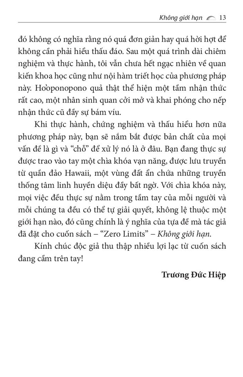 1.Không Giới Hạn - Khám Phá HO'OPONOPONO "KHÔNG GIỚI HẠN là câu chuyện về sự trở về trạng thái zero, nơi không một thứ gì tồn tại nhưng mọi thứ đều khả dĩ. Ở trạng