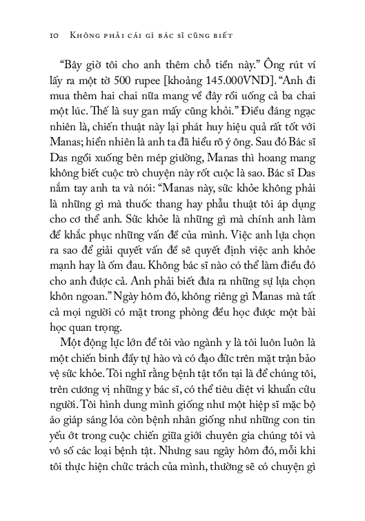 Cuốn sách "Không phải cái gì bác sĩ cũng biết" do tiến sĩLingaraj Nath, bác sĩ phẫu thuật tim nổi tiếng nhất ở Bhubaneswar, Ấn Độ, dựa trên hiểu biết và trải nghiệm thực tế trong nghề y của mình viết nên. Nội dung sách đề cập đến các vấn đề liên quan đến sức khỏe của con người, từ tinh thần, cảm xúc như tình yêu, tình bạn, các mối bận tâm, sự đam mê trong cuộc sống... đến sức khỏe thể chất, tri thức về lỗi hệ thống y tế, cơ thể phụ nữ, giấc ngủ, lão hóa, hệ miễn dịch, số theo dõi sức khỏe cá nhân, thực phẩm ta hấp thu vào cơ thể, lối sống yoga, và thậm chí đến việc chọn lọc kiến thức về y học sức khỏe từ các "bác sĩ Google”.
