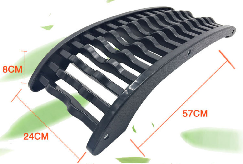 Thông số kỹ thuật Cân nặng: 1kg Kích thước: Chiều dài 37cm; Chiều rộng 25cm Dụng cụ tập lưng giảm đau cột sống Chất liệu: Nhựa cao cấp Tại phần đế: Có nhiều nấc để tăng giảm chiều cao của dụng cụ tập lưng theo nhu cầu người sử dụng. Các điểm gài được gia cố chắc chắn bằng các móc nhựa chắc chắn Miếng nhựa tiếp xúc với phần lưng có thêm các gợn sóng điều hòa trên bề mặt, nhằm tạo sự thoải mái cho người dùng.