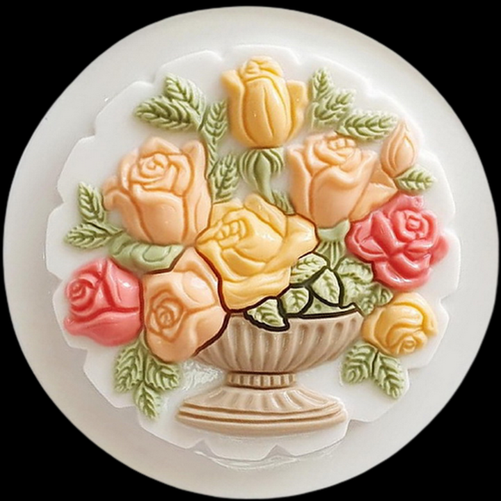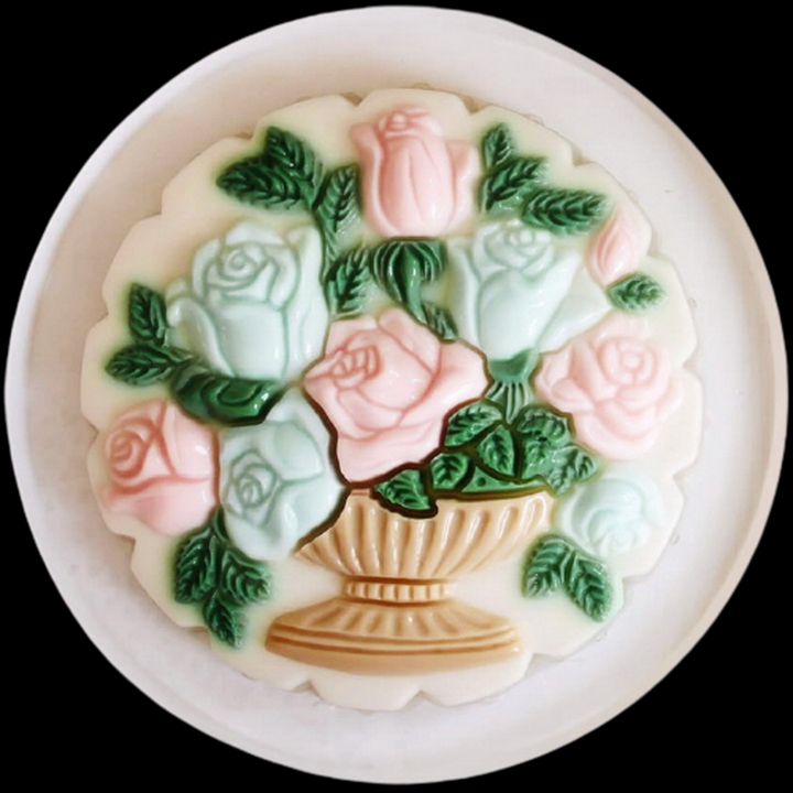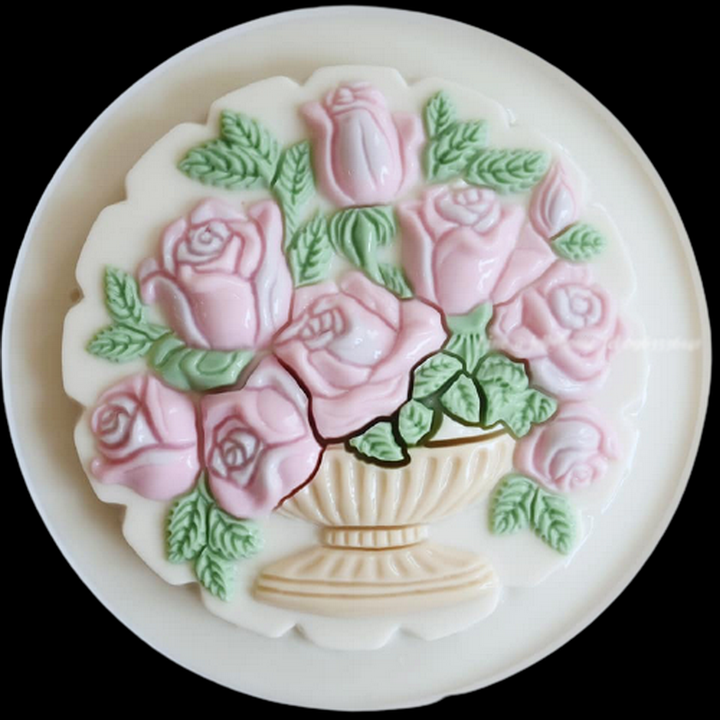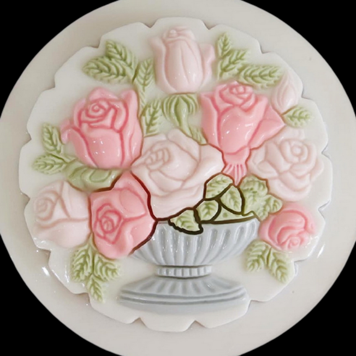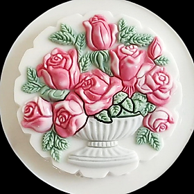 ✨Khuôn rau câu sinh nhật, cưới hỏi hình tròn bình hoa hồng – Mã số 1037