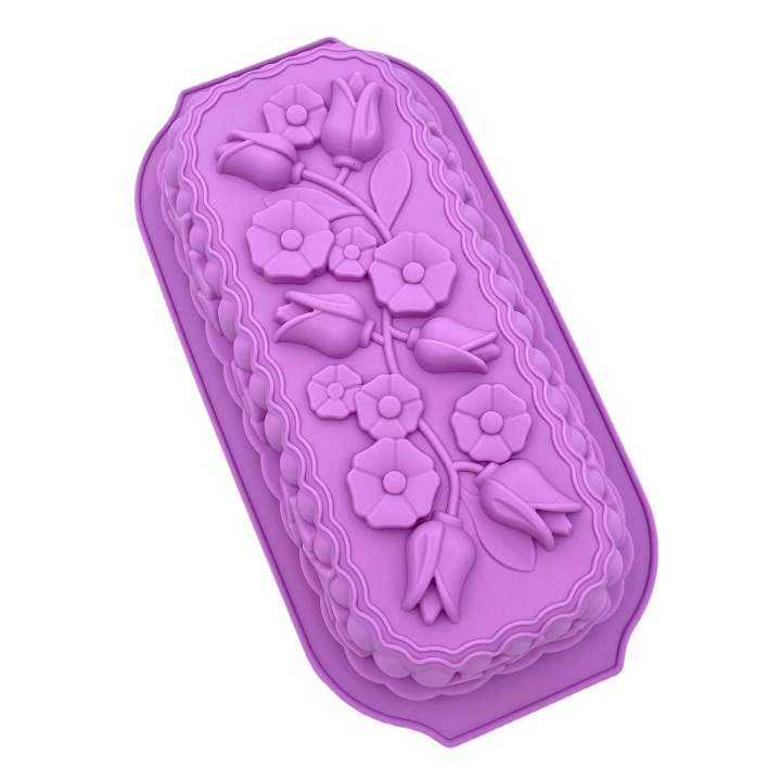 Khuôn silicon làm đế bánh, rau câu, bánh mì hình chữ nhật các loại hoa - Loại 32 cm - Mã số 1127
