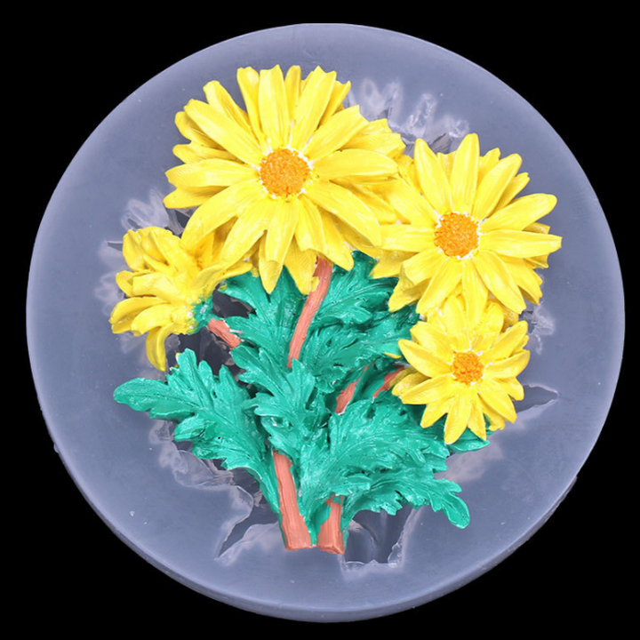 Khuôn silicon làm rau câu 4 hoa cúc họa mi kèm lá - Loại 10 cm - Mã số 1147