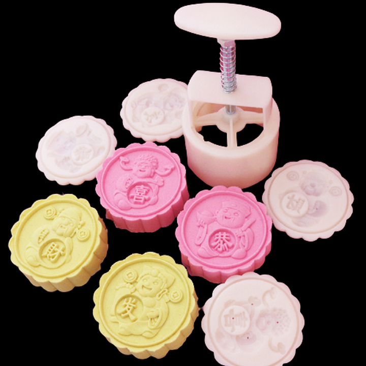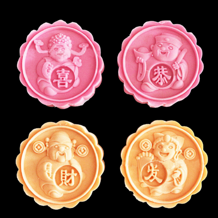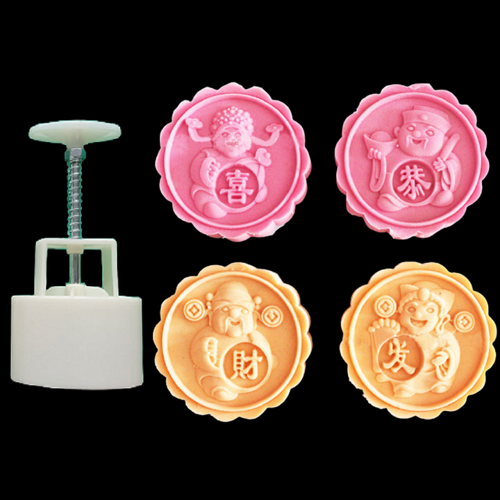 ✨Khuôn trung thu lò xo, khuôn ép xôi 4 mặt tròn Thần Tài cung hỷ phát tài – Mã số 1113