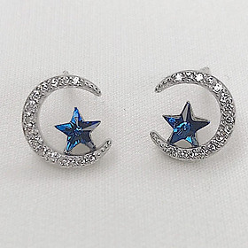 Khuyên tai bạc 925 trăng sao xanh đính đá lấp lánh long lanh nổi bật trẻ trung thanh lịch Dế Bạc - K5359