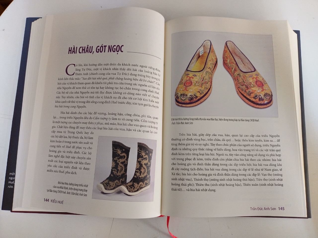 Sách mới Kiểu Huế Tác giả: Trần Đức Anh Sơn Nxb Tổng hợp TP Hồ Chí Minh, phát hành vào 12/2021. Sách khổ 1827cm, (khổ như cuốn Từ điển nhà Nguyễn), bìa cứng có áo bìa, ruột in 4 màu, có 450 ảnh minh họa nội dung bài viết. Bản giới hạn đánh số Có ký tặng của tác giả. … Giới thiệu: Dưới đây là mục lục của sách, có bổ sung 12 bài, là những bài có đánh dấu (), so với bản in lần đầu: THAY LỜI TỰA LỄ NGHI & LỐI SỐNG Lễ hội cung đình triều Nguyễn Tết Huế Lễ tết ở Huế (*) Xuân du phương thảo địa Thu vàng xứ Huế Hoa của làng CHỐN Ở Phủ đệ - nơi lưu giữ Huế xưa Vương phủ của Thi Ông, Thi Bá Hồn Huế trong Lạc Tịnh Viên