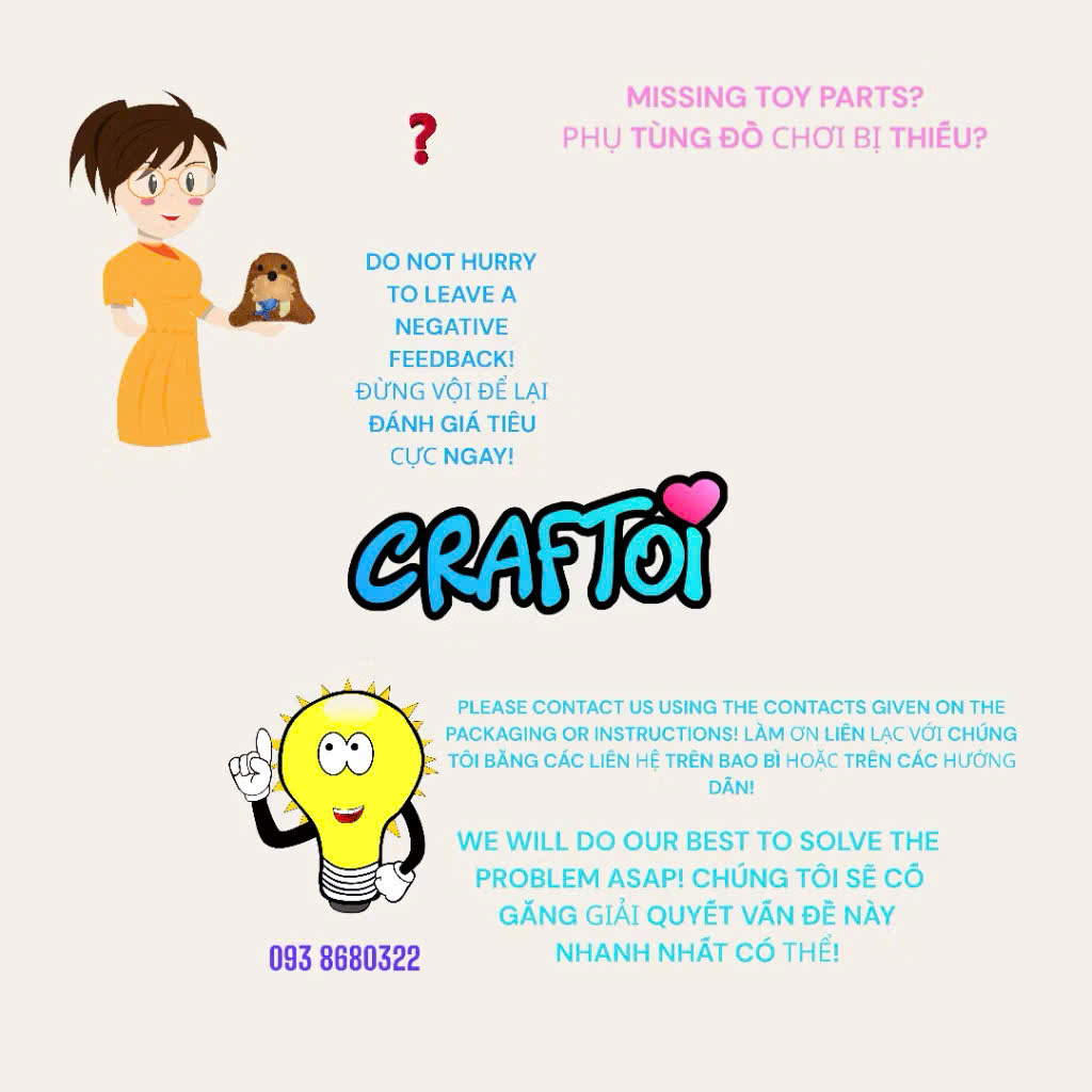 Mua tại TiktokMã hàng: SEAL SILKY Tuổi sử dụng: 5+ Kích thước: 14x14 cm Một bộ bao gồm: 8 bộ phận làm bằng vải nỉ Bông nhồi Chỉ may và bông nhồi Kim an toàn làm bằng nhựa Bảo quản: trong phòng khô thoáng. Thành phần: polyester, nhựa. Năm sản xuất: 2023 Độ bền của sản phẩm: sử dụng không giới hạn!!! Xuất xứ VIỆT NAM !!!!!!! Được Trung Tâm Giám Định Và Chứng Nhận Hợp Chuẩn Hợp Quy VietCert đánh giá chứng nhận phù hợp Quy chuẩn QCVN 3:2019/BKHCN của Bộ Khoa Học - Công nghệ. Đồ chơi sáng tạo từ nhồi bông. Hãy bắt đầu may con búp bê đầu tiên của bạn!!! Cực kì dễ dàng may với lỗ đục săn và kim làm bằng nhựa rất an toàn. Bé tự may thú bông cho mình Các bạn nhỏ tự tay may vá Vì mất nhiều thời gian tự may, bé sẽ yêu quý con thú bông của mình hơn. Rèn luyện tính kiên nhẫn kỹ năng tư duy logic cho trẻ em Sử dụng vải sang trọng an toàn Mềm mại hơn, thích hợp cho bé chơi Được làm từ bông PP mềm Tự làm thú nhồi bông sẽ giúp trẻ nâng cao kỹ năng tập trung, khéo léo của đôi bàn tay. Đồng thời giúp trẻ trân trọng và nâng niu hơn những gì do chính tay mình làm ra. Bộ sản phẩm handmade Sewing giúp trẻ em tự làm thú nhồi bông một cách dễ dàng. Rất đơn giản, trẻ có thể dễ dàng dùng KIM NHỰA khâu các miếng nỉ được đã đục lỗ sẵn cùng với chỉ thêu đính kèm, và sau đó nhồi thêm bông để tạo ra một con vật vô cùng đáng yêu. Mẹ hãy giúp em thực hiện món đồ này để có những kỉ niệm thật vui với nhau nha! Tất cả đã gói gọn trong bộ sản phẩm tự làm thú nhồi bông của Craftoi, vô cùng an toàn và lại rất dễ. SEAL SILKY Creativity set. Stuffed toy. Sewing my first doll !!! Easy to sew with a prepunched holes and safety plastic needle. 5+ DIMENSIONS: 14x14 cm THE SET INCLUDES: 8 FELT PARTS STUFFING THREADS SAFETY PLASTIC NEEDLE Storage: in dry ventilated rooms. Materials: polyester, plastic. Service life is not limited !!! MADE IN VIETNAM Has been assessed to conform to the Standard OCIN 3:2019 BKHCN of the Ministry of Science and Technology by VIETCERT CERTIFICATION AND INSPECTION CENTRE