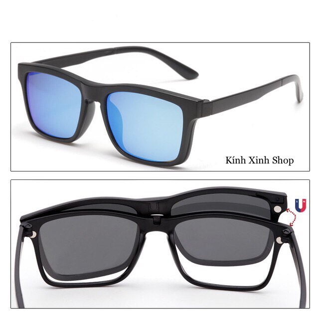 Gọng Kính Cận, Kính Râm Cận, Kính Chống Nắng Dáng Chữ Nhật Clip On 2in1 Thiết Kế Đơn Giản Cho Nam Nữ Phù hợp với người bị cận nhưng lại muốn đeo kính râm. Tháo