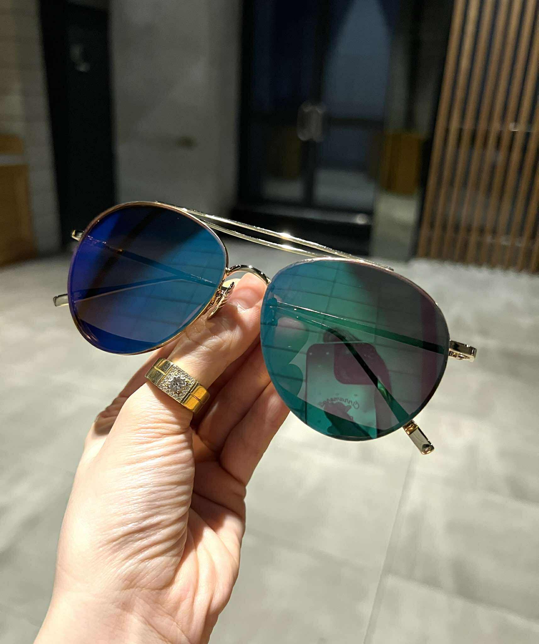 ✨Kính râm nam nữ thời trang chống nắng Mắt xanh tráng gương form nhỏ sành điệu