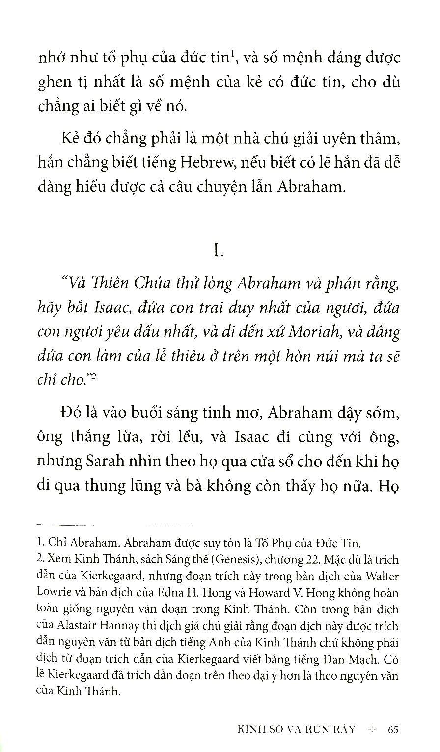 “Bản dịch này – có lẽ là lần đầu tiên của một tác phẩm quan trọng của Kierkegaard sang tiếng Việt – nhuần nhị, say mê không chỉ trong văn phong mà cả trong sự thâm cảm của dịch giả với tác phẩm, bất chấp bao ngăn cách.” – Bùi Văn Nam Sơn.