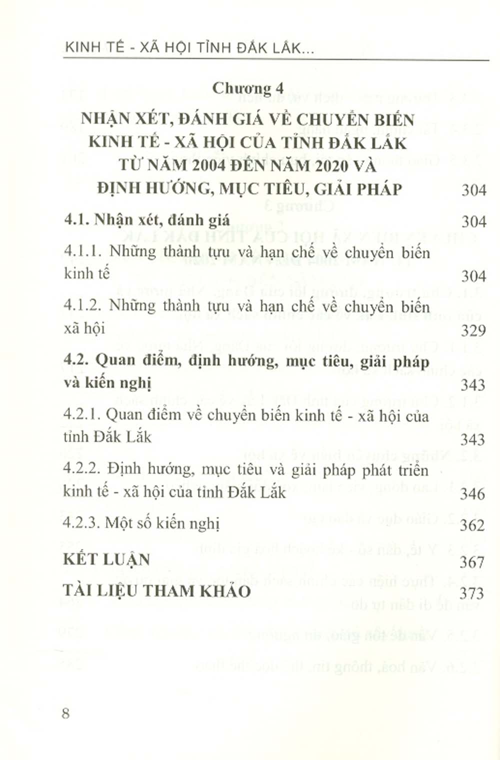 Tuy nhiên, đến nay, tỉnh Đắk Lắk vẫn gặp nhiều khó khăn trong phát triển kinh tế - xã hội. Trong quá trình phát triển, bên cạnh những kết quả đạt được, do những yếu tố khách quan và chủ quan, sự phát triển kinh tế - xã hội của tỉnh Đắk Lắk còn bộc lộ nhiều hạn chế, chưa tạo được bước đột phá theo hướng đẩy mạnh công nghiệp hóa, hiện đại hóa. Nhiều tiềm năng, lợi thế của tỉnh chưa được phát huy. Kinh tế phát triển chưa bền vững, đặc biệt là ngành kinh tế công nghiệp, tăng trưởng kinh tế nông nghiệp vẫn dựa nhiều vào các yếu tố phát triển theo chiều rộng chủ yếu là do mở rộng diện tích canh tác. Trong việc thực hiện các chính sách xã hội vẫn còn một số khó khăn như chất lượng giáo dục, đặc biệt là giáo dục học sinh DTTS vẫn còn thấp, các vấn đề xã hội vẫn còn nảy sinh những bất cập, phức tạp như tà đạo, đạo lạ, vấn đề di cư tự do ngoài kế hoạch. Chính vì vậy, việc nghiên cứu về kinh tế - xã hội ở tỉnh Đắk Lắk từ năm 2004 đến năm 2020 không chỉ nhằm tái hiện bức tranh sinh động về quá trình phát triển kinh tế - xã hội, mà trên cơ sở đó để xuất các định hướng, mục tiêu và giải pháp cho sự phát triển kinh tế - xã hội của tỉnh trong thời gian tới nhằm thúc đẩy kinh tế - xã hội của tỉnh phát triển một cách bền vững theo hướng công nghiệp hóa, hiện đại hóa, hội nhập quốc tế. Xuất phát từ những lý do trên, chúng tôi xuất bản cuốn sách Kinh tế - xã hội tỉnh Đắk Lắk từ năm 2004 đến năm 2020. .