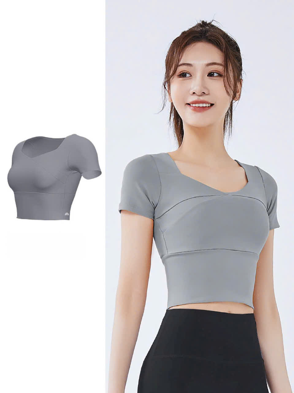 - Áo croptop thể thao tập gym, yoga dành cho nữ với form dáng ôm tôn dáng, chất vải co giãn thấm hút mồ hôi tốt Kiểu dáng thời trang với thiết kế phía sau