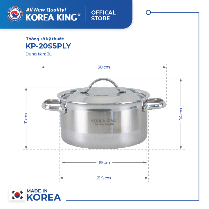 Đánh giá chi tiết KP-20S5PLY Nồi inox 5 lớp đáy liền Korea King (Nồi, nắp đều bằng inox, đường kính 20cm, dung tích 3L)-Hàng chính hãng Mô Tả Sản Phẩm NỒI INOX 5 LỚP